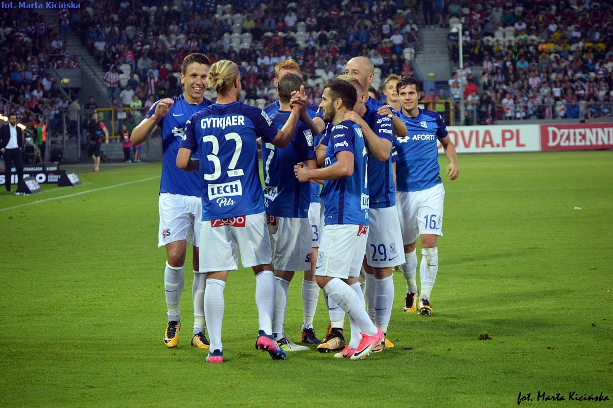 Kolejorz wygrał z Cracovią 2:0 po golach Kamila Jóźwiaka i Christiana Gytkjaera.